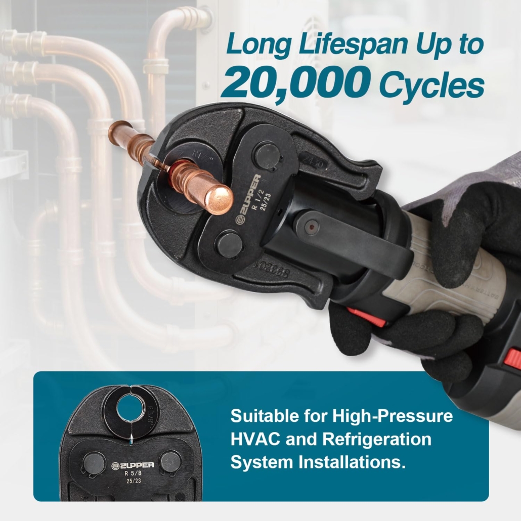 ZUPPER Compact Press Jaws, 7PCS Pressing Jaws Kit 1/4″ to 1 1/8″ Suitable for RLS press fittings ACR Copper Pipes, Compatible with Compact Press Tools (24 kN / 5,400 lbs) – with Carrying Case